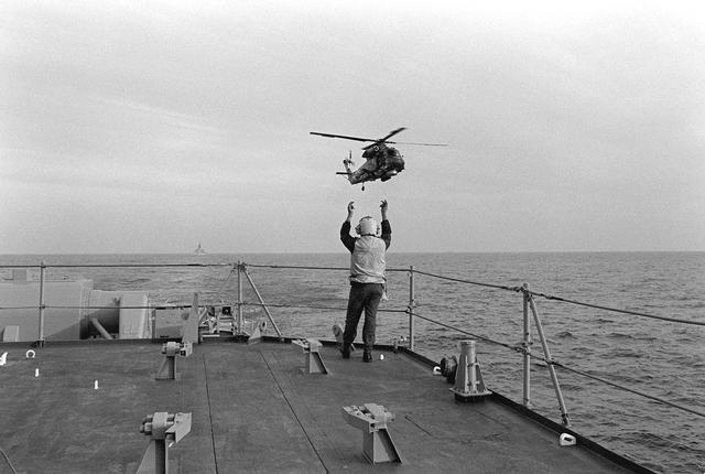 37k | SH-2F Seasprite helicopter from Light Helicopter Antisubmarine Squadron 34 (HSL-34) preparing to land aboard USS Coontz (DDG-40). Photo taken 15 DEC 1981, in the Adriatic Sea. | Ed Cleary | |