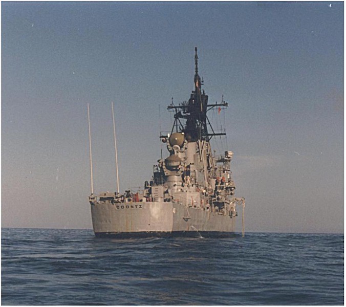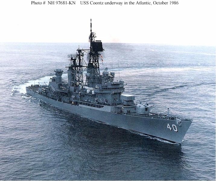 30k | A stern view of USS COONTZ (DDG-40) underway. Chesapeake Bay, April 1 1988. | Ed Cleary | |