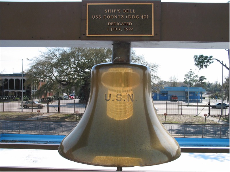 128k | CHARLESTON, S.C.- The Coontz name rang out on July 1, 1992 as the family and the ship played a role in a dedication at Naval Hospital Charleston. The bell from the decommissioned Guided Missile Destroyer Coontz was rung by Patricia Coontz, wife of retired Capt. Robert Coontz as the bell was dedicated to the hospital. The decommissioned ship was named after Coontz' grandfather Adm. Robert Coontz. The principal speaker at the event was Capt. Charles Gnerlich, the ship's former commanding officer. Photo taken March 12 2003. | Brian N. Kroenung II EMC(SW) | |