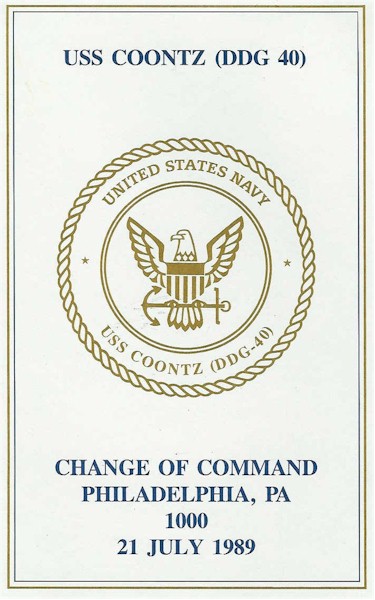 61k | Cover of the 21 July 1989 Change of Command ceremony pamphlet. | Brian N. Kroenung II EMC(SW) | |