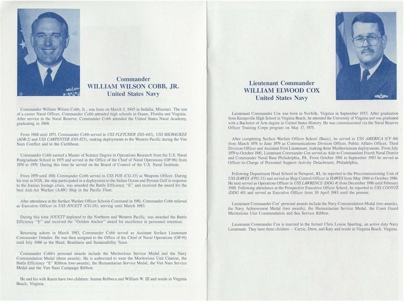 130k | Inside the 21 July 1989 Change of Command ceremony pamphlet. | Brian N. Kroenung II EMC(SW) | |