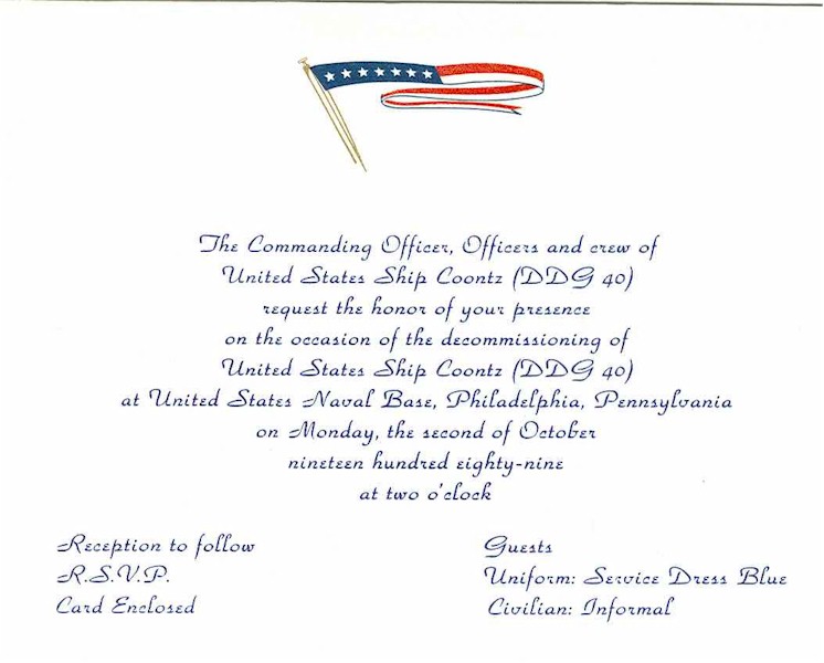 65k | USS Coontz Recommissioning Invitation 18 March 1972. | Brian N. Kroenung II EMC(SW) | |