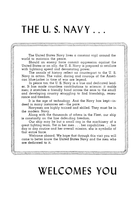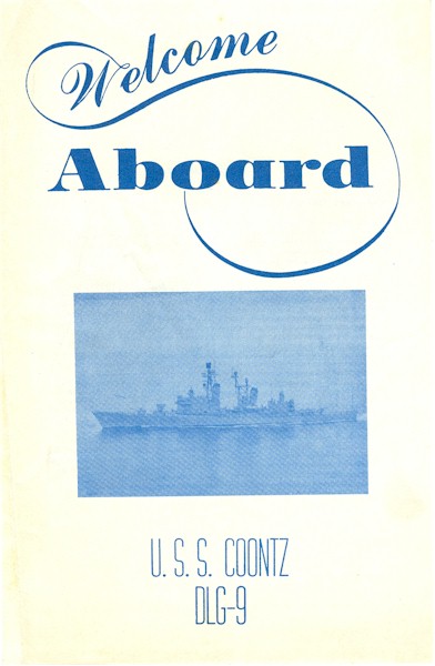44k | Cover of the Welcome Aboard package from the Coontz’s visit to Australia in 1961/2. | EMC(SW) Brian Kroenung | |