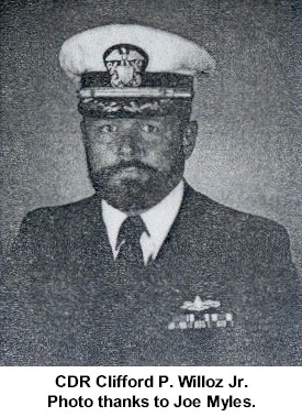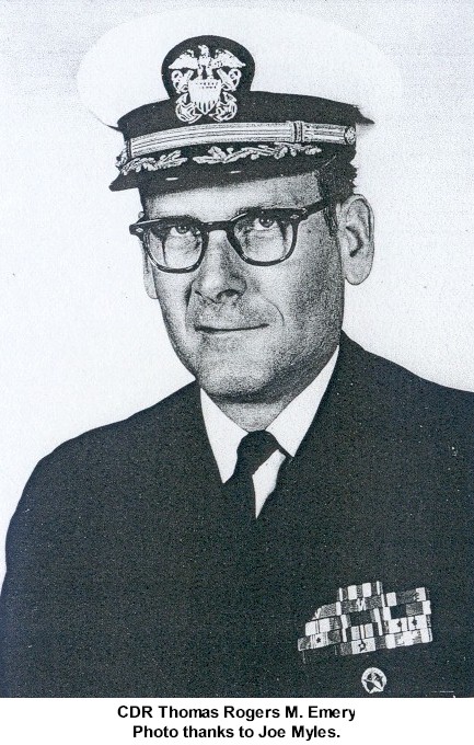 CDR Herbert Hamilton Ries Jul 15 1960 - Jul 14 1962 CDR James Richard Collier Jul 14 1962 - Mar 7 1964 CDR Eugene Crouse Kenyon Jr. Mar 7 1964 - Aug 14 1965 CDR Charles Ward Cummings Aug 14 1965 - Jul 27 1967 (Later RADM) CDR Eugene Dale Geiger Jul 27 1967 - Feb 7 1969 CDR Donald Patterson Roane Feb 7 1969 - Jul 8 1970 (Later RADM) CDR Thomas Joseph Bowen Jul 8 1970 - Feb 23 1971 (Decommissioned Feb 23 1971 - Mar 18 1972) CDR Thomas Rogers M. Emery Mar 18 1972 - Dec 20 1973 (Later RADM) CDR Frederic Northey Howe Jr. Dec 20 1973 - Mar 6 1976 CDR Silas Oscar (Sy) Nunn III Mar 6 1976 - Apr 8 1978 CDR Walter Potts Martin Apr 8 1978 - Sep 28 1979 CDR Clifford Paul Willoz Jr. Sep 28 1979 - Sep 6 1981 CDR Joseph Paul Reason Sep 6 1981 - Dec 17 1982 (Later ADM) CDR Leon Preston Brooks Jr. Dec 17 1982 - Feb 25 1985 CDR Charles Henry Gnerlich Feb 25 1985 - Apr 11 1987 CDR William Wilson Cobb Jr. Apr 11 1987 - Jul 21 1989 (Later RADM) LCDR William Elwood Cox Jul 21 1989 - Oct 4 1989