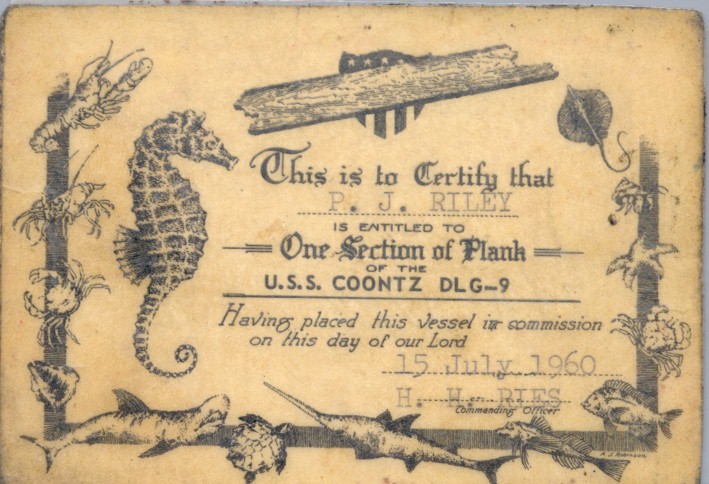 110k | USS Coontz (DLG-9) plankowner card issued on July 15, 1960. | Brian Kroenung | |