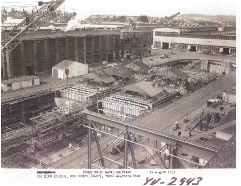 122k | USS Coontz (DLG-9) and USS King (DLG-10) during their construction at the Puget Sound Naval Shipyard, August 9, 1957. | Brian N. Kroenung II EMC(SW) | |