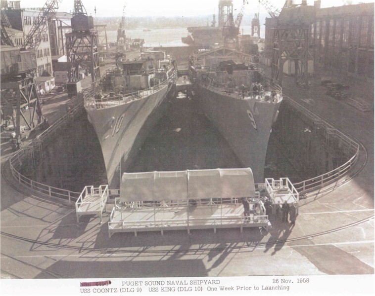 128k | USS Coontz (DLG-9) and USS King (DLG-10) during their construction at the Puget Sound Naval Shipyard, November 26, 1958. | Brian N. Kroenung II EMC(SW) | |