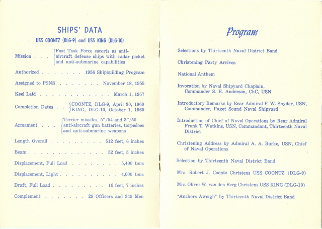160k 146k | USS Coontz and USS King Christening booklet from December 6 1958. | Brian N. Kroenung II EMC(SW) | |