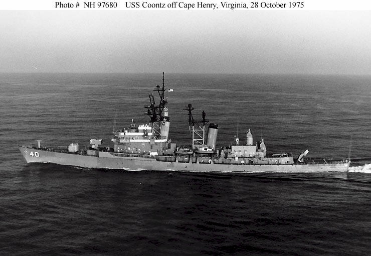 84k | USS Coontz (DDG-40) underway in the Atlantic Ocean, off Cape Henry, Virginia, on 28 October 1975. hotographed by PHAN W.H. Flynn. Official U.S. Navy Photograph, from the collections of the Naval History and Heritage Command. Photo #: NH 97680. Replacement photo for image # 05014002. | Robert Hurst | |