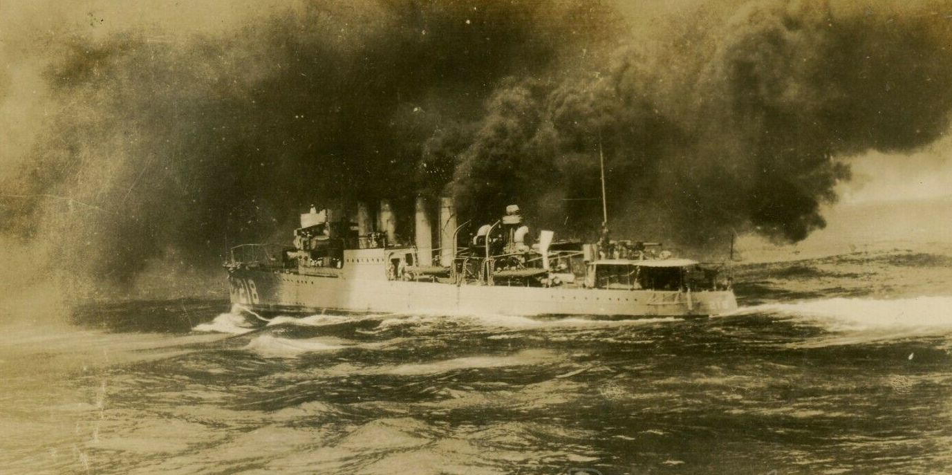 94k | USS Parrott (DD 218) departing Mare Island, 23 August 1942. She was in overhaul at the yard from 30 July to 31 August 1942.