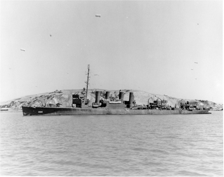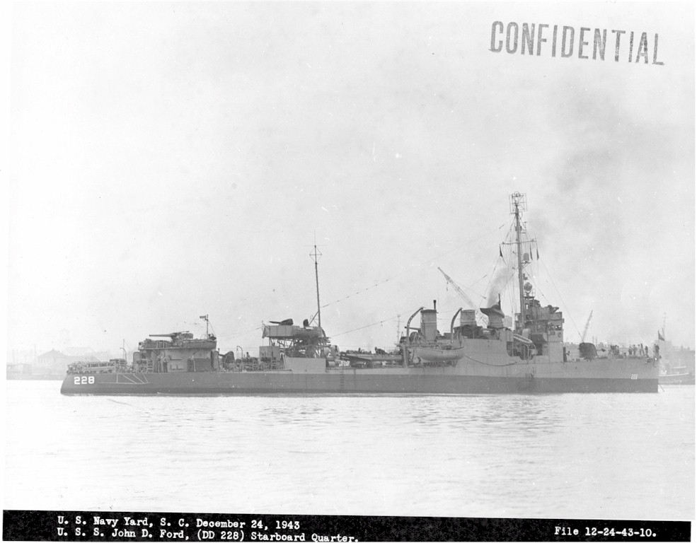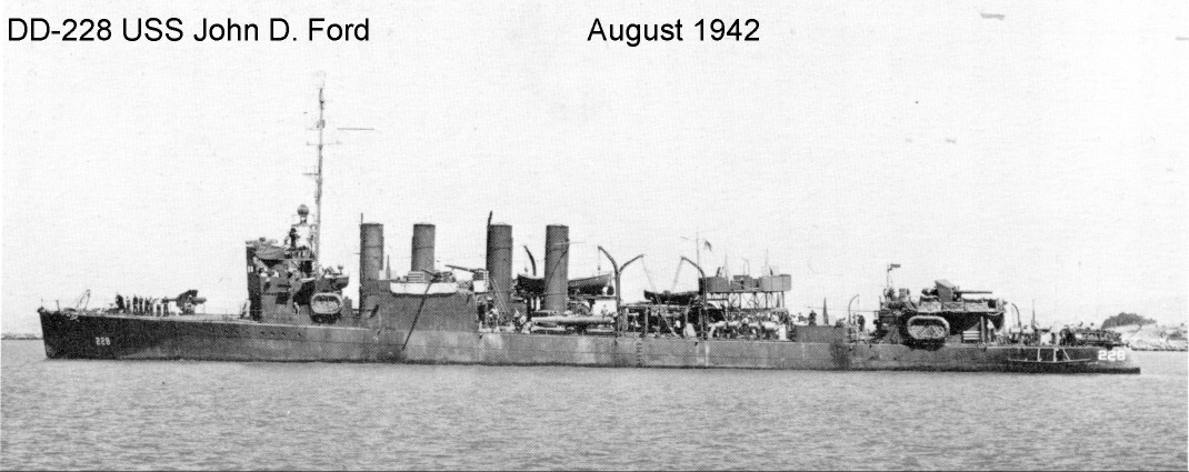 76k | Navy Photo 4678-8-42, broadside view of USS John D. Ford (DD 228) departing Mare Island on 7 August 1942. She was in overhaul at the yard from 20 July to 7 August 1942. | Darryl Baker |