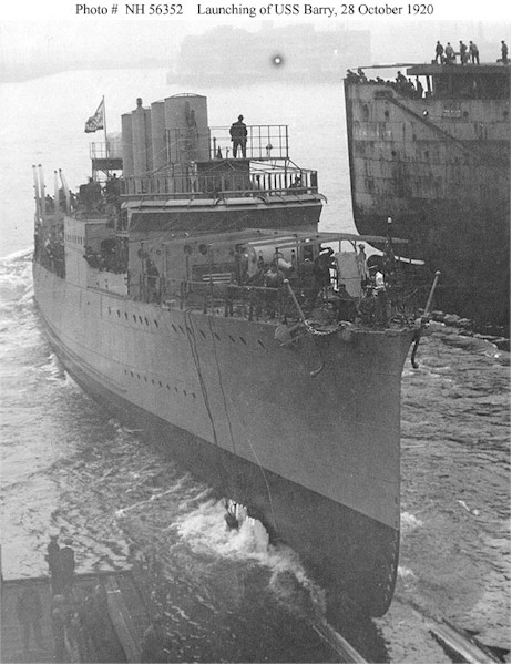 84k | Photo #: NH 56352, USS Barry (DD-248) enters the water, during her launching at the New York Shipbuilding Corporation shipyard, Camden, New Jersey, 28 October 1920. U.S. Naval Historical Center Photograph. | Paul Rebold |