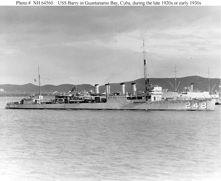 108k | Photo #: NH 64560, USS Barry (DD-248) in Guantanamo Bay, Cuba, during the late 1920s or early 1930s. Donation of Franklin Moran, 1967. U.S. Naval Historical Center Photograph. | Paul Rebold |