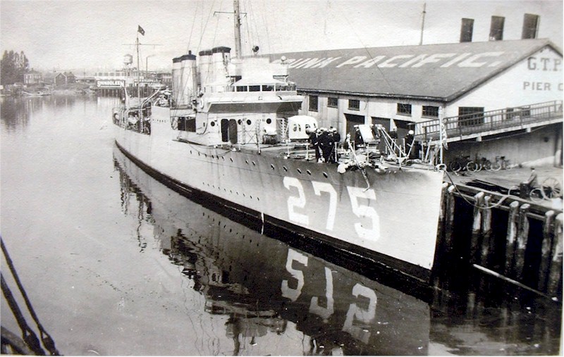 125k | Sinclair at the Grand Trunk Pacific Railroad docks, Prince Rupert, B.C., Canada. The photo probably dates to 1920 when Sinclair was on tour of ports in B.C. and Alaska with the Secretary of the Navy and the Pacific Fleet Commander in Chief on board. | Chuk Munson |