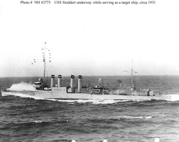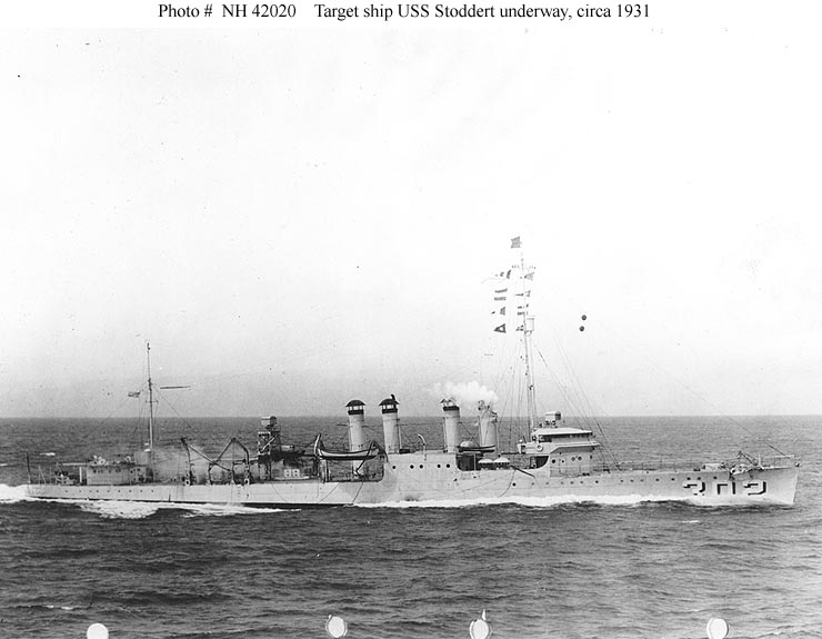 | 90k | USS Stoddert (DD-302) underway, circa 1931, while serving as a radio-controlled target ship. U.S. Naval Historical Center Photograph. Photo #: NH 42011. | Robert Hurst |