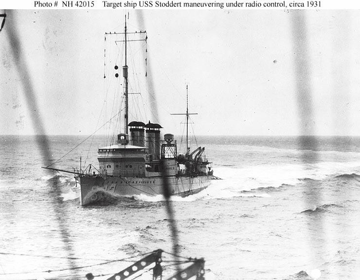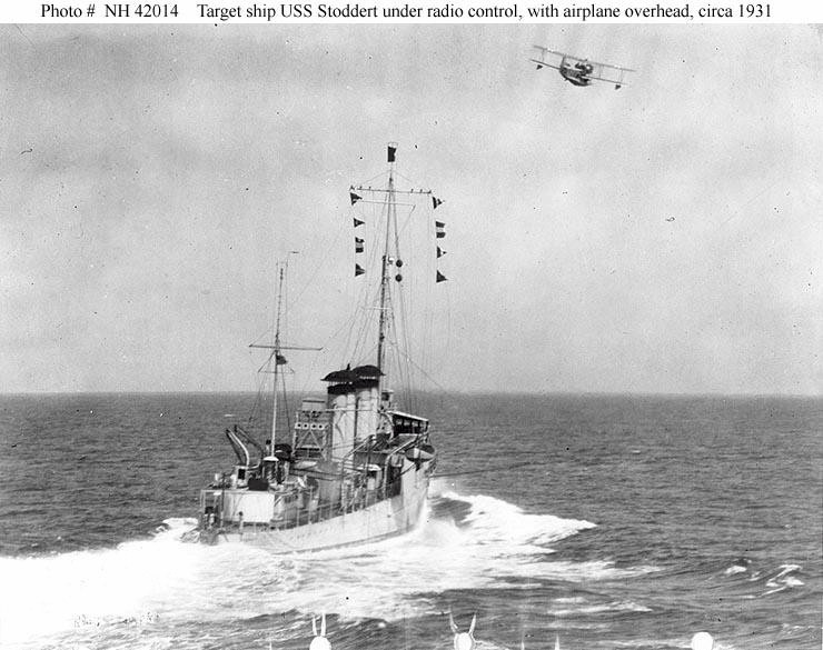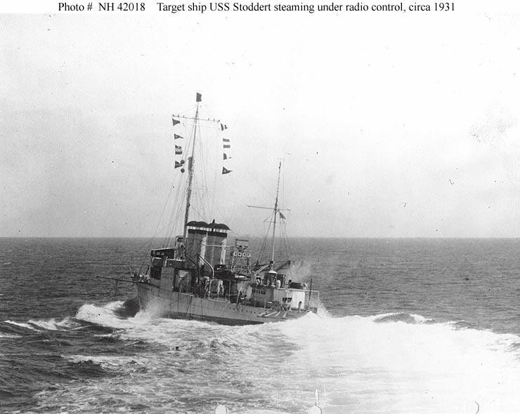 | 95k | USS Stoddert (DD-302) maneuvering under radio control, circa 1931, following conversion to a target ship. U.S. Naval Historical Center Photograph. Photo #: NH 42015. | Robert Hurst |