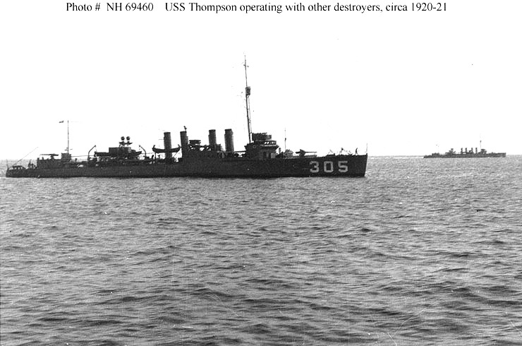 | 88k | USS Thompson (DD-305) Operating with other destroyers, circa 1920-1921. Courtesy of ESKC Joseph L. Aguillard, USNR, 1969. U.S. Naval Historical Center Photograph. | Fred Weiss |