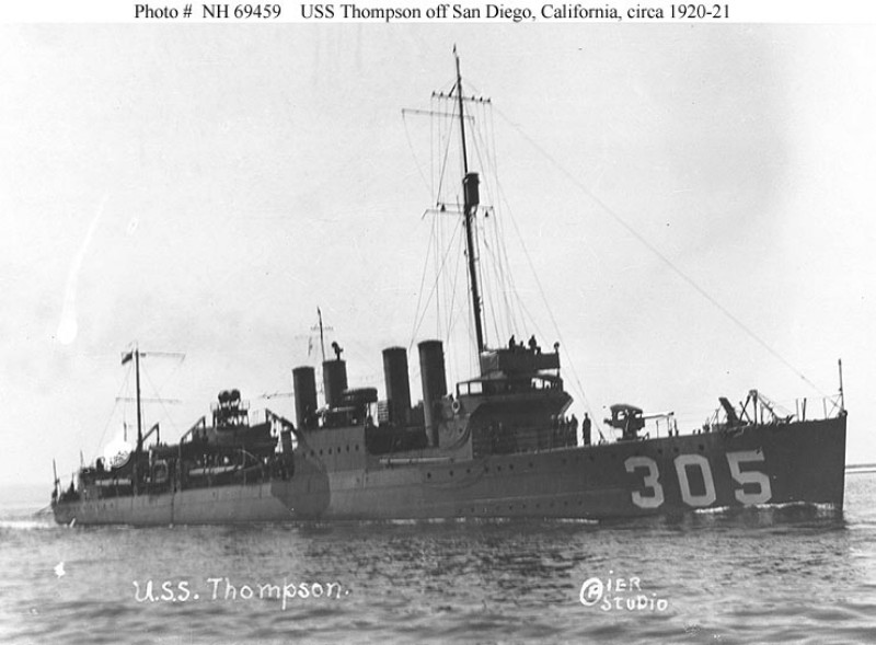 | 82k | USS Thompson (DD-305) off San Diego, California, circa 1920-1921. Photographed by the Pier Studio, San Diego (USN Photo No 69459). | Robert Hurst |