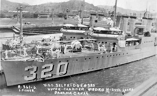 | 64k | U.S.S. Selfridge in the upper chamber of the Pedro Miguel Locks, Panama Canal. The picture was printed on Post Card stock sometime between 1927 and 1940. It is part of the Collection of Chuk Munson. | Chuk Munson |