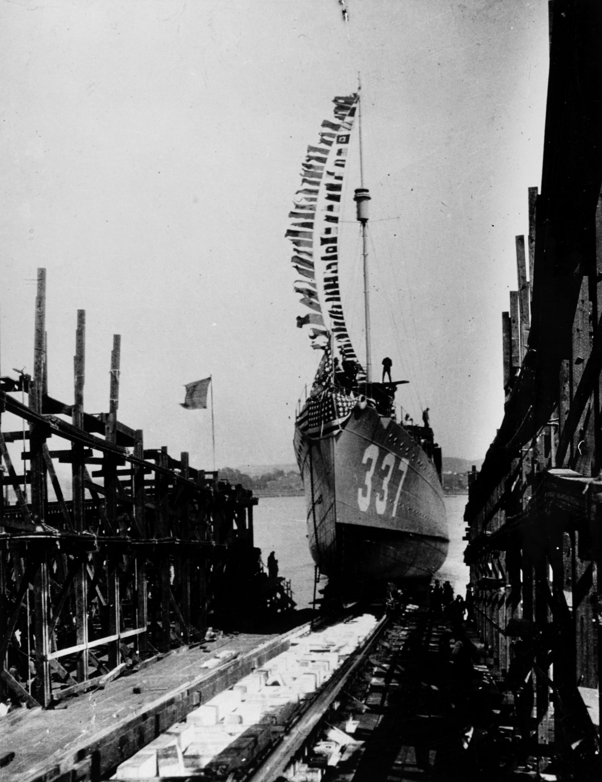 | 425k | Zane (DD-337) sliding down the building ways at the Mare Island Navy Yard, California, 12 August 1919. Naval History & Heritage Command photo NH 68734, from the William H. Topley Collection, courtesy of Charles M. Loring, 1969. | Fred Weiss / Robert Hurst | |