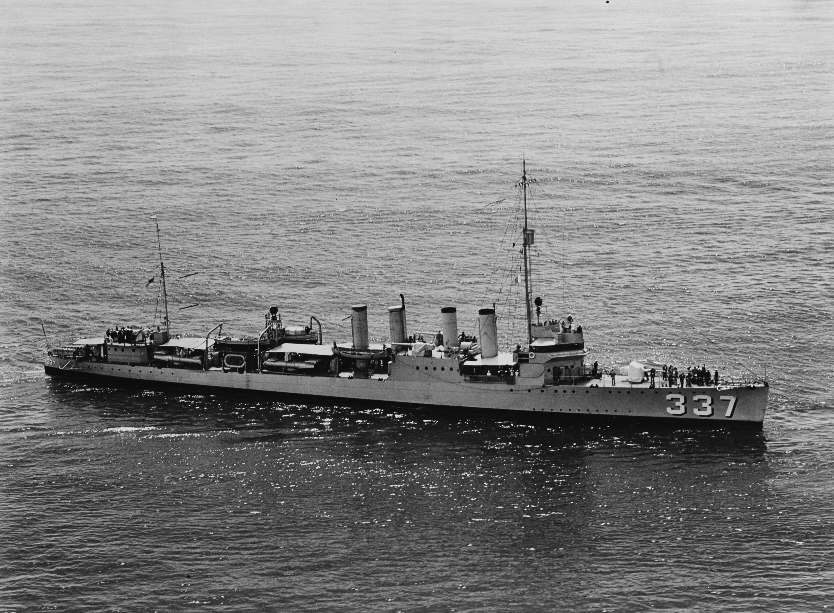 | 334k | USS Henley (DD-391) operating at sea with USS Zane (DD-337), 02 May 1938. Note that Henley's Mark 33 gun director is not installed. Naval History & Heritage Command photo NH 74271 | Fred Weiss | |