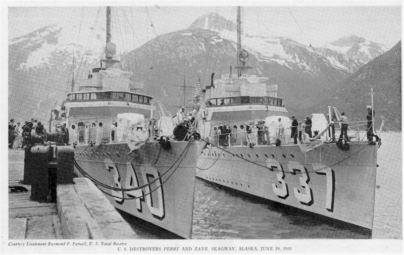 | 126k | USS Perry (DD-340) and USS Zane (DD-337) moored at Skagway, Alaska, 25 June 1935. | Darryl Baker | |