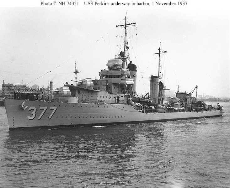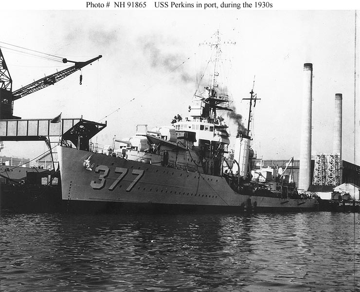 | 126k | Photo #: NH 74321. USS Perkins (DD-377) underway in harbor (probably at San Diego, California), 1 November 1937. U.S. Naval Historical Center Photograph. | Tony Cowart |