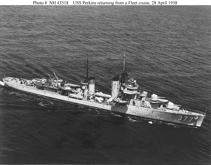 | 104k | Photo #: NH 43518. USS Perkins (DD-377) returning from a Fleet cruise, 28 April 1938. Official U.S. Navy Photograph, from the collections of the Naval Historical Center. | Tony Cowart |