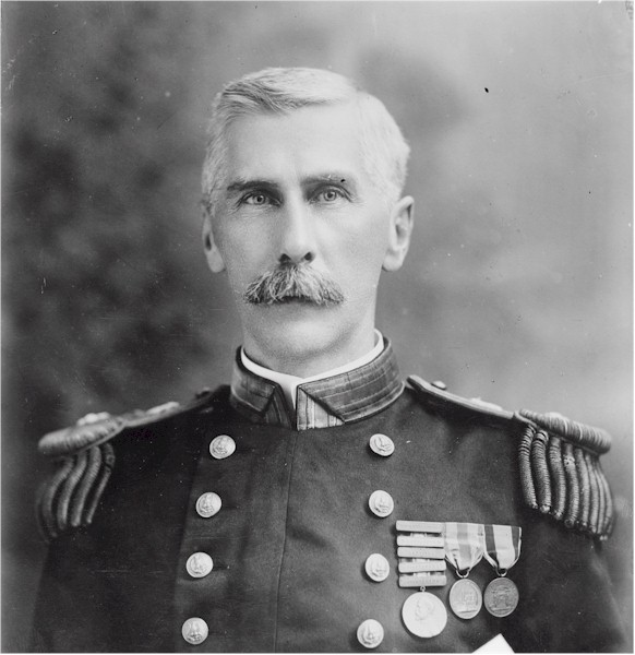 | 73k | Edwin Alexander Anderson was born on 16 July 1860 in Wilmington, North Carolina. He graduated from the U.S. Naval Academy in 1882. Two years' sea duty on the sloop of war Kearsarge and the gunboat Alliance was followed by promotion to Ensign in 1884 and service on USS Quinnebaug in European waters. From 1888 to 1896 he had survey and hydrographic assignments, among them a tour on the research steamer Albatross. Anderson attained the rank of Lieutenant (Junior Grade) in September 1894. In early 1897, he reported on board the cruiser Marblehead and was promoted to Lieutenant in March 1898. On 11 May 1898, during the Spanish-American War, he led the Marblehead boat parties that helped cut the communication cables off Cienfugos, Cuba. Later in the war Anderson delivered the Spanish vessel Adula to Savannah, Georgia, and in late 1898 and early 1899 commanded captured Spanish gunboats. Lieutenant Anderson was next assigned to the Naval Torpedo Station at Newport, Rhode Island, and in 1901-1902 commanded USS Nashan. In 1903 he served in the Far East, commanding the former Spanish gunboats Don Juan de Austria and Isla de Cuba as well as reaching the rank of Lieutenant Commander. Tours at the Washington Navy Yard and on USS Pennsylvania followed. In 1906-1907 he led the Second Torpedo Flotilla and received promotion to Commander. After recruiting duty at Cincinnati, Ohio, service at the Mare Island Navy Yard, California, and command of the gunboat Yorktown, in July 1911 Anderson was promoted to Captain. He then commanded the battleships Iowa and New Hampshire. While in the latter ship, he participated the intervention at Vera Cruz, Mexico, leading the Second Seaman Regiment in combat ashore in April 1914. For his "extraordinary heroism in battle" at that time, he was awarded Medal of Honor. Captain Anderson attended the Naval War College in 1915-1916 and was Supervisor of Naval Auxiliaries at Norfolk, Virgina from late 1916 into the first months of World War I. Temporarily promoted to Rear Admiral in May 1917, his performance as Commander, Patrol Squadron ONE was recognized with the award of the Distinguished Service Medal. His flag rank became permanent in November 1918 and was followed by assignments as commander of an Atlantic Fleet cruiser division and, from November 1919 to May 1922, as Commandant, Sixth Naval District, headquartered at Charleston, South Carolina. He became Commander in Chief, Asiatic Fleet in August 1922, with the temporary rank of Admiral. When a severe earthquake rocked Japan in September 1923, Anderson acted quickly, sending ships to help the devastated cities of Tokyo and Yokohama. A month later, Anderson returned to the United States and served in the Office of the Chief of Naval Operations until his retirement, as a Rear Admiral, in March 1924. Edwin A. Anderson died on 23 September 1933 at his home at Masonboro Sound, Wilmington, North Carolina and is buried at Arlington National Cemetary, Arlington, Virginia. Digital ID: ggbain 19696, Library of Congress Prints and Photographs Division. | Bill Gonyo |
