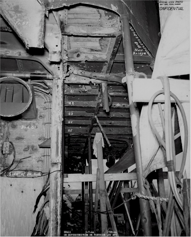 Damage views of USS Anderson at the Pearl Harbor Yard, 7 March 1944. NA 19GC DD411. | John Chiquoine and Dave Schroeder |