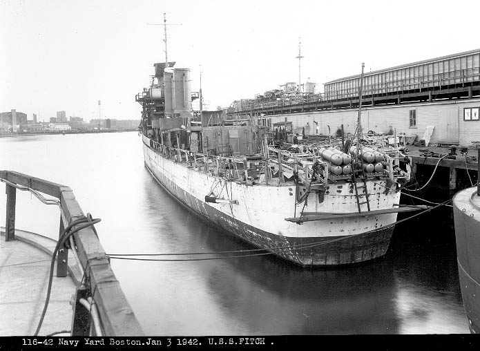 | 102k | USS Fitch (DD-462) in Boston Harbor, 2 April 1943. (Boston Navy Yard photograph 1478-43, Boston National Historical Park Collection, NPS Cat. No. BOSTS-11125) | Stephen P. Carlson, Boston NHP, Charlestown Navy Yard |
