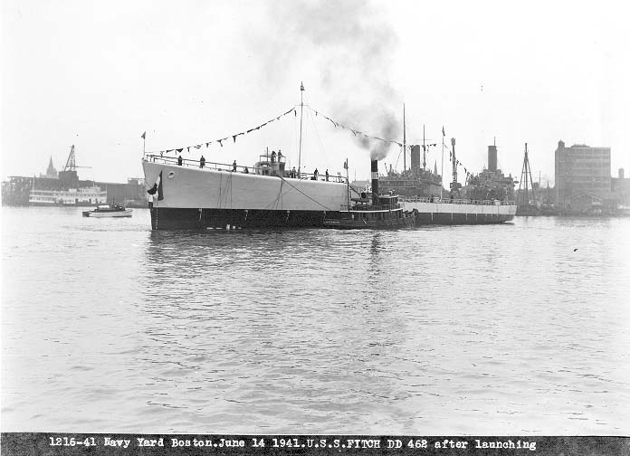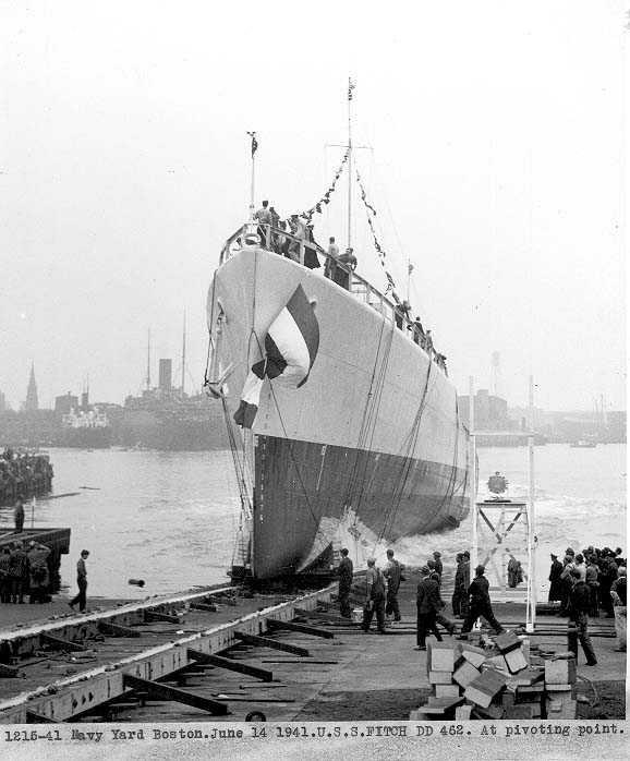 | 79k | USS Fitch (DD-462) is seen in Boston Harbor immediately after launching, 14 June 1941. (Boston Navy Yard photograph 1216-41, Boston National Historical Park Collection, NPS Cat. No. BOSTS-11126) | Stephen P. Carlson, Boston NHP, Charlestown Navy Yard |