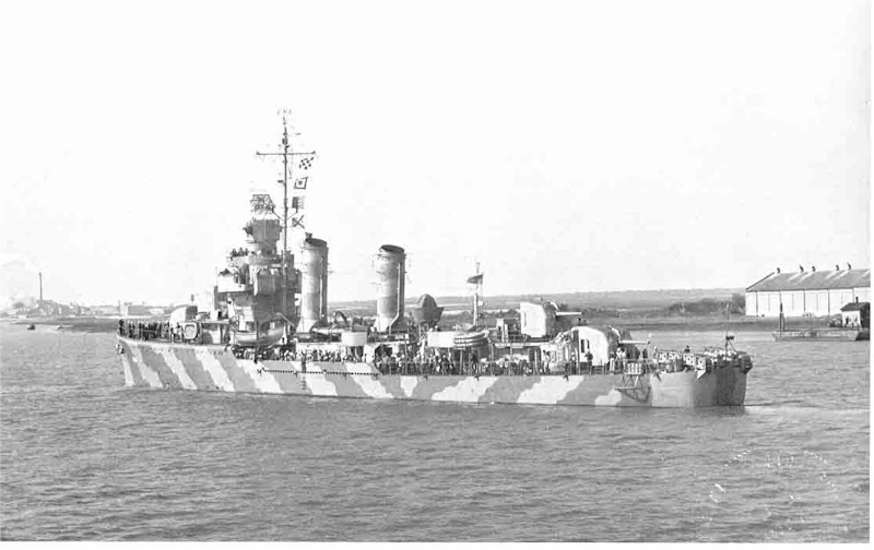 | 79k | USS Hobson (DD-464) underway in the late summer of 1942. She is painted in another distinctive, one-off paint job linked with Measure 15. In this case white has been extensively used for painting-out at high levels (USN). Photo and text taken from Naval Camouflage 1914-1945, by David Williams. | Robert Hurst/Bill Gonyo |