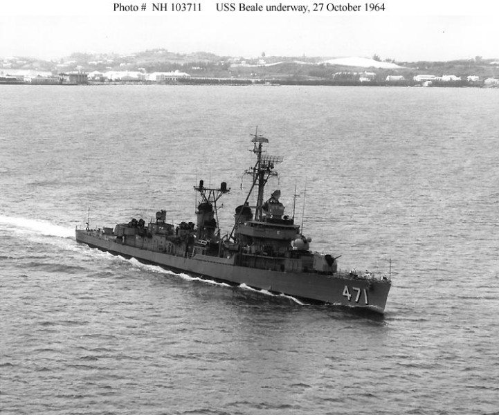 | 83k | USS Beale underway at sea, 21 July 1964. photographed by Airman Darrell L. Johnson (USN Photo No NH 103710). | Robert Hurst |