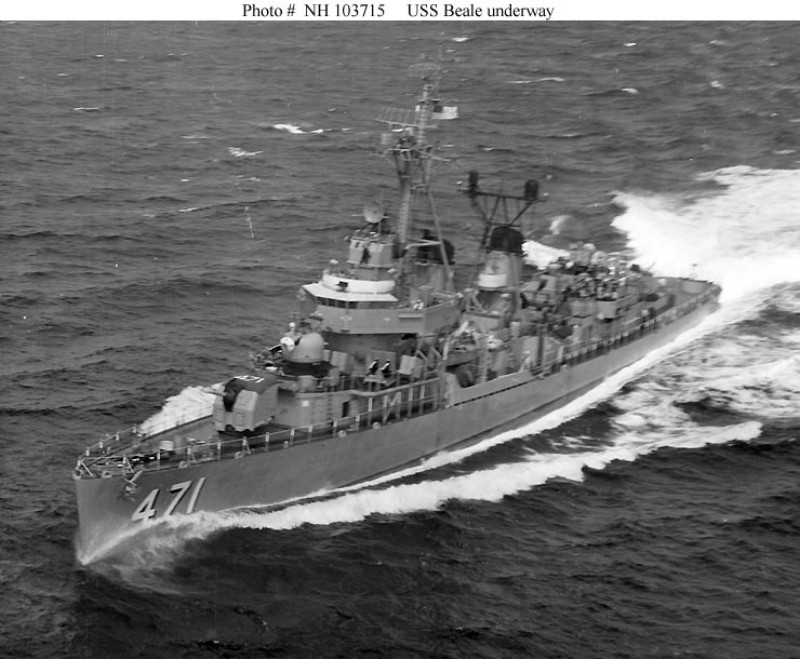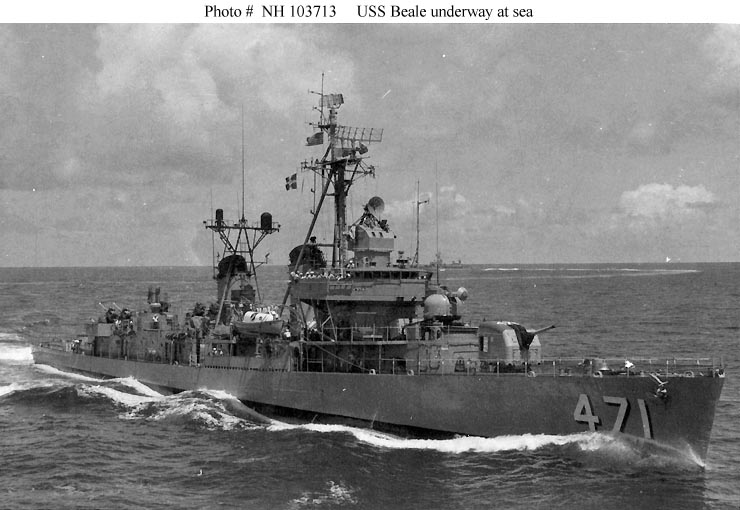 | 71k | Photo #: NH 103713. USS Beale (DD-471) underway at sea during the 1960s. Official U.S. Navy Photograph, from the collections of the Naval Historical Center. | Bill Gonyo |