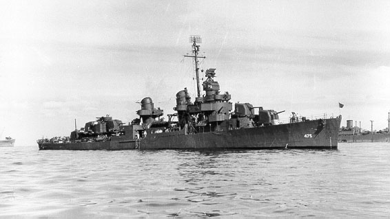 105k | Stern view of USS Hudson (DD-475) “in stream” in Boston Harbor on 13 May 1943. (U.S. Navy photograph #NYBos 2079-43, Boston National Historical Park Collection, NPS Cat. No. BOSTS-11439) | Stephen P. Carlson, Boston NHP, Charlestown Navy Yard |
