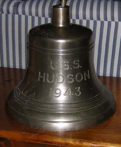 27k | John B. Pratt, son of Admiral Richard Rockwell Pratt, presented the eighty pound bell of the USS Hudson (DD-475) to his Dad on Christmas Day 2004. Admiral Pratt commanded the USS Hudson (DD-475) from 1943-1945. CDR. Richard Rockwell Pratt was awarded the Navy Cross twice for extraordinary heroism and distinguished service in the line of this profession as Commanding Officer of the Destroyer U.S.S. HUDSON (DD-475) during operations against enemy Japanese forces in the vicinity of Okinawa in 1945. Prior to the Okinawa campaign he was awarded the Silver Star for conspicuous gallantry and intrepidity as Commanding Officer of the Destroyer U.S.S. HUDSON (DD-475), in action against enemy Japanese-held Guam, on 20 July 1944; the Palau Islands from 30 March to 1 April 1944; and during the First Battle of the Philippine Sea, in June 1944. Handling his ship with skill and courage, Commander Pratt contributed greatly to the subsequent success of these operations. His conduct and leadership were in keeping with the highest traditions of the United States Naval Service. | Hugh Hudson III |