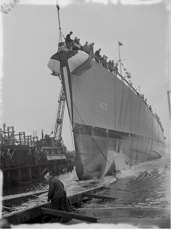 96k | Launching June 3 1942 at the Boston Navy Yard. Leslie Jones Collection, Boston Public Library. | Ed Zajkowski |