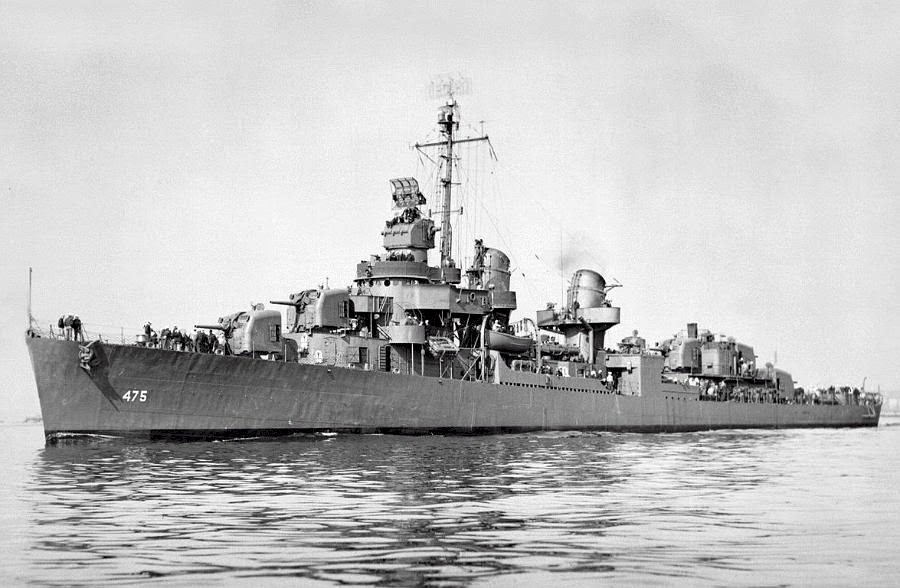 148k | USS Hudson, DD-475, rescues the crew of a TBM shot down by a Japanese plane, 3000 yards off Guam, 21 July 1944. NARA Photo. The ship is painted in camouflage Measure 32, Design 13d. | Fred Weiss |