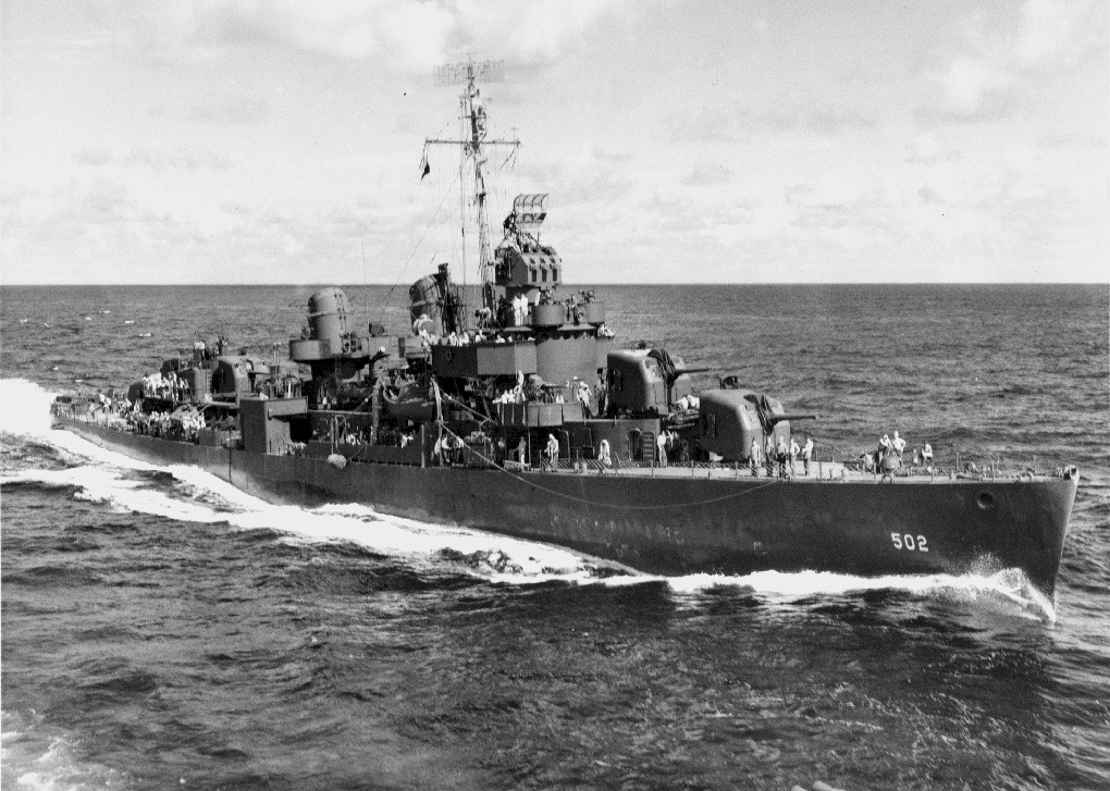 USS Sigsbee (DD-502) is outboard and