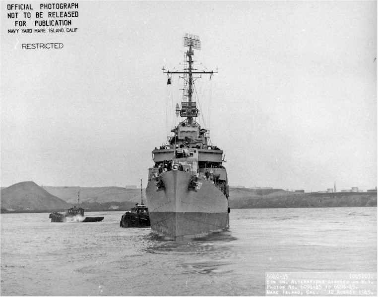 | 97k | Bow on view of USS Isherwood (DD 520) departing Mare Island on 12 Aug 1945 with two of the yards YTLs assisting. | Darryl Baker | |