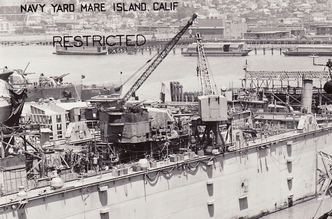 | 241k | Looking across Mare Island Navy Yard at Isherwood in drydock ARD-21, 02 July 1945.