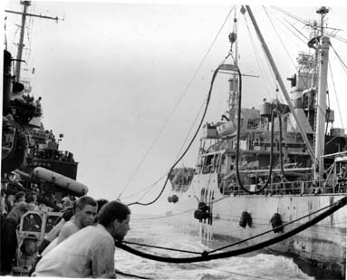 | 28k | Refueling at sea by the USS SALAMONIE (AO 26), on October 18, 1944. | USS Bush (DD-529) website | |