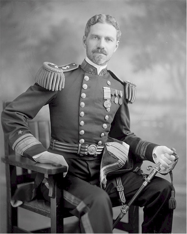 | 95k | Nathan Crook Twining was born on 17 January 1869 at Boscobel, Wisconsin. He was appointed a naval cadet in 1885 and graduated from the United States Naval Academy on 7 June 1889. During the Spanish-American War, he served in Iowa (Battleship No. 4) in Cuban waters and later was executive officer of Kearsarge (Battleship No. 6) when that ship circumnavigated the globe with the "Great White Fleet." He commanded Tacoma (Cruiser No. 18) during the bombardment of Vera Cruz in 1914. During World War I, he served as Chief of Staff for Admiral Sims, Commander of Naval Forces in European waters, and was also a member of the Allied War Council. Rear Admiral Twining retired early in 1923 and died on 4 July 1924 at Nantucket, Mass. Nathan C. Twining was the uncle of United States Air Force General Nathan F. Twining (October 11, 1897 – March 29, 1982), and United States Marine Corp General Merrill B. Twining (November 28, 1902 – May 11, 1996). Photo courtesy of the Library of Congress. | Bill Gonyo | |