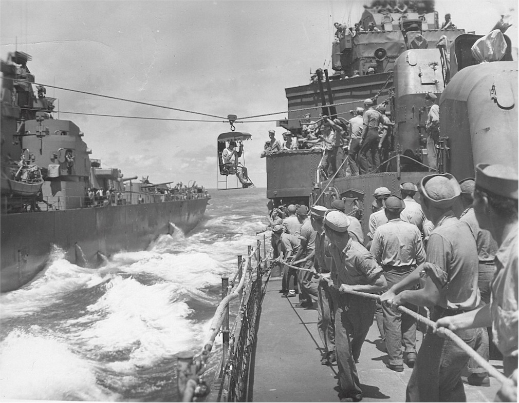 | 201k | USS Midway (CVA-41) and the destroyer USS Twining (DD-540) during an underway replenishment with USS Polaris (AF-11). Midway, with assigned Carrier Air Group 1 (CVG-1), circumnavigated the globe between 27 December 1954 and 14 July 1955. U.S. Navy photo from the USS Midway (CVA-41) 1955 cruise book. | Robert Hurst | |