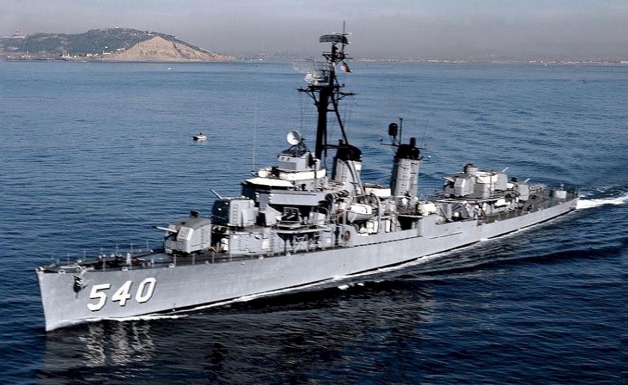 161k | Twining (DD-540) leading a column, location unknown, 1960. Official Navy PAO photo. | Mike Smolinski | |