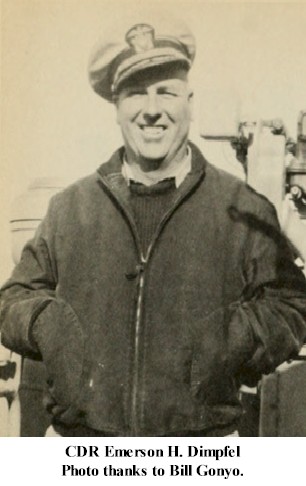 LCDR Thomas Henry Copeman Jul 10 1943 - Jan 13 1945 CDR Robert Rutherford Craighill Jan 13 1945 - Apr 8 1946 (Later RADM) LCDR Jay Wayne Land Apr 8 1946 - Aug 1 1946 (Decommissioned Aug 1 1946 - Oct 27 1950) CDR Emerson Hayden Dimpfel Oct 27 1950 - Jun 1952 CDR George Aloysius Hayes Jun 1952 - Jun 1953 CDR Henry Edward Schmidt Jun 1953 - Sep 1954 CDR Freeland Harold Carde Jr. Sep 1954 - Jul 14 1956 CDR John Graham Drew II Jul 14 1956 - Jul 16 1958 CDR Miles Rush Finley Jr. Jul 16 1958 - Jun 22 1960 CDR Elmer Ray Rath Jun 22 1960 - Feb 9 1962