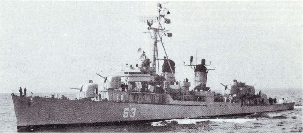 | 95k | On Greek service the HNS NAVARINO, D-63, ex- USS BROWN, DD 546. Picture dates back from late 60's. Place unknown. | Anthony J. Vrailas | |