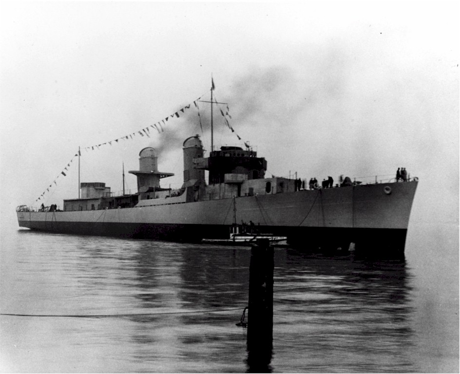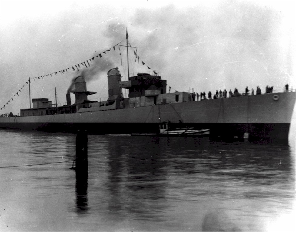 563k | USS Johnston (DD-557) on the day of her comissioning, 27 October 1943. Naval History & Heritage Command photo NH 63495, courtesy of Mrs. Roger Dudley | Fred Weiss |