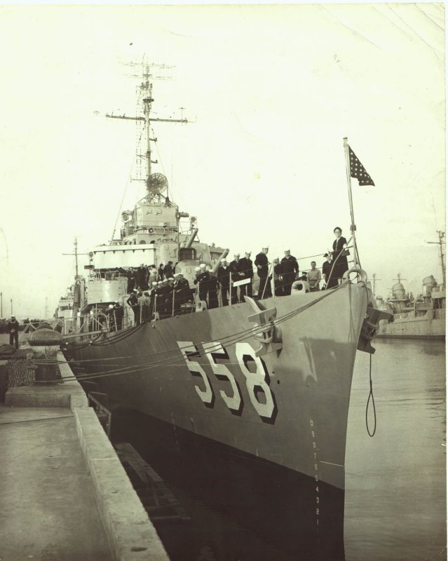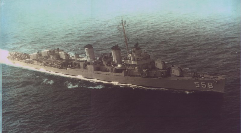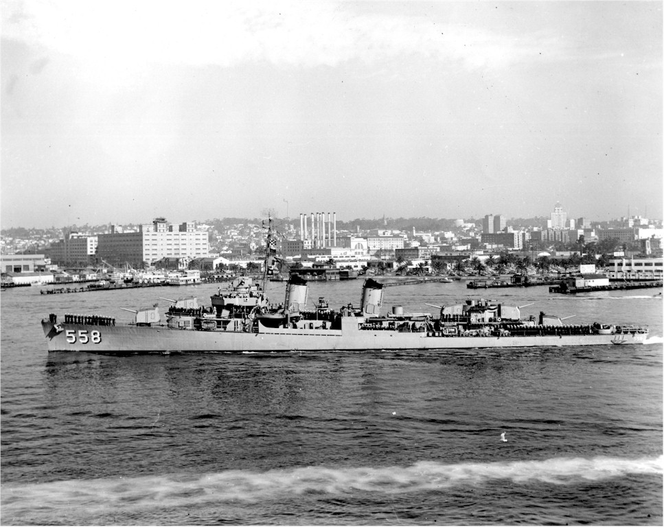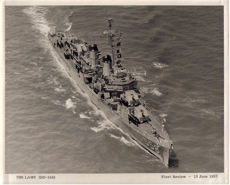 | 46k | Undated early 1950 view of the USS Laws (DD-558) essentially in her, as commissioned configuration. Source: Australian War Memorial, Photo No.302650. | Mike Green |